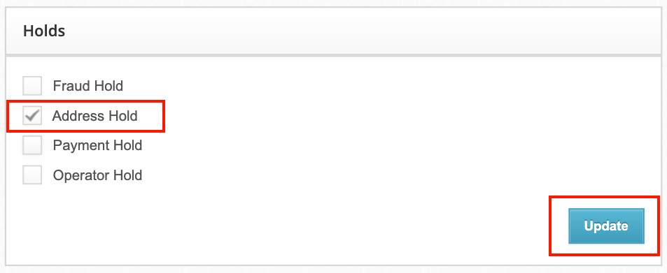 Pour retirer l'address hold manuellement sans modifier l'adresse, décochez la case Address Hold, puis cliquez sur Update.